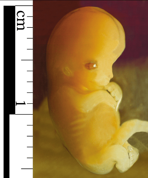 The embryonic development continues after the first 10 days of the germinal stage (ie zygote and blastocyst stages). This happens within the first 8 weeks since fertilisation (or 10 weeks after gestation). The embryo should now be embedded in the endometrium in a process called implantation. Cell division continues and we get significant cell differentiation (the emergence of different type of cells that result in blood cells, nerve cells, etc). Note that the embryo is literally in embryonic stage. That is, it does not have any functional organs though it starts to show some human features. A “proto”-heart (called a tubular heart) starts to pulsate at around 22 days (see https://www.ncbi.nlm.nih.gov/pmc/articles/PMC1767109/). It is still some way before it is fully formed. The nervous system starts to develop late in the 4th week but no brain yet.